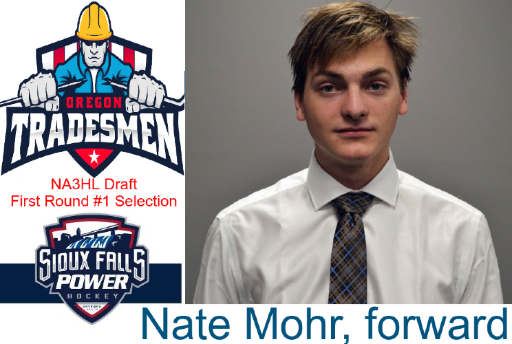 Oregon Tradesmen, the newest team in the NA3HL, held the first selection and used it to select Nate Mohr of the Sioux Falls POWER U18. A native of Sioux Falls, the 6’0 forward scored 12 goals and 14 assists in 20 NAPHL games last season.