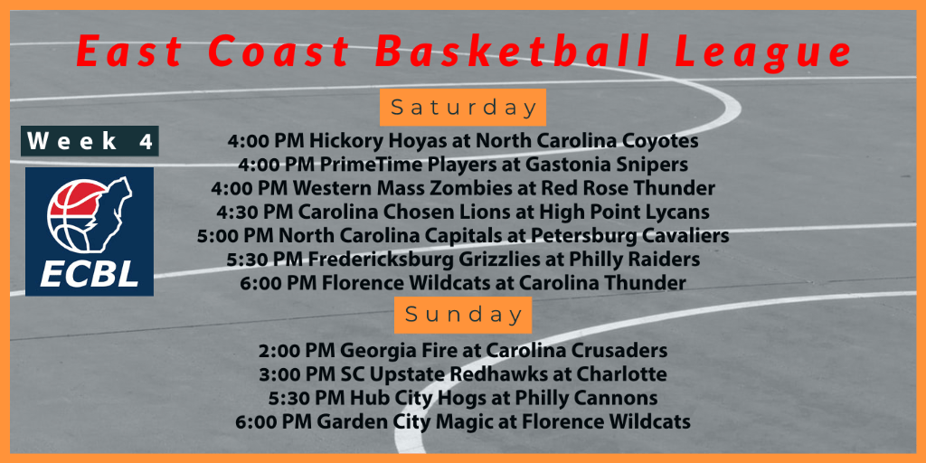 Eleven game are on the East Coast Basketball League calendar this week including the debut of the Garden City Magic, Hub City Hogs, Philly Raiders and Western Mass Zombies. Carolina Thunder also tip off their regular season on Saturday night.