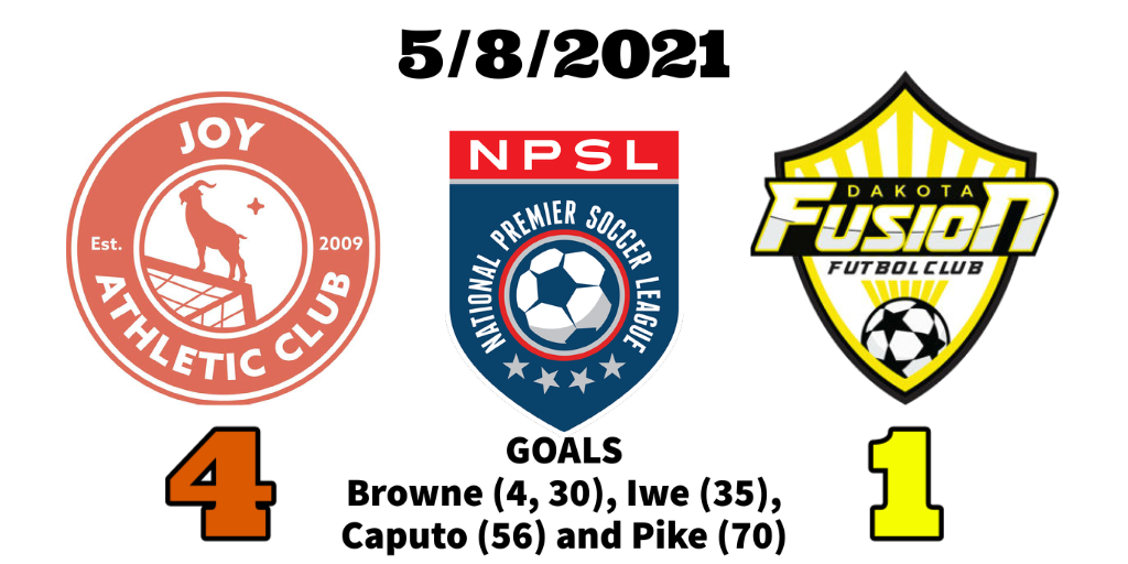 It was a cloudy, but comfortable evening on Saturday at St. Louis Park High School Stadium where Joy Athletic Club took the pitch for their first-ever National Premier Soccer League (NPSL) match. The opponent was Dakota Fusion FC, a member of the NPSL North since 2017. At the end of night, Joy Athletic Club had their first three NPSL points with a 4-1 victory.