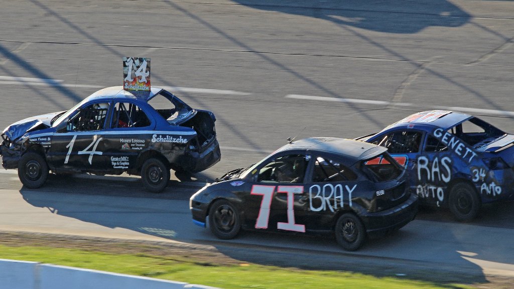 69 cars were on track for the Rocktoberfest 300 enduro race on October 1 at Dells Raceway Park. The 300-lap race was the sixth of the Impact Survival Series seven-event season. Karl Genett of Rangeline, Wisconsin dominated the race, lapping the entire field to easily take home the $3,000 prize.